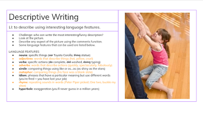 The "Descriptive Writing" activty is used for practising using descriptive language.